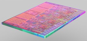 A continuación se puede ver el trozo de oblea correspondiente a un microprocesador Intel Core i7.